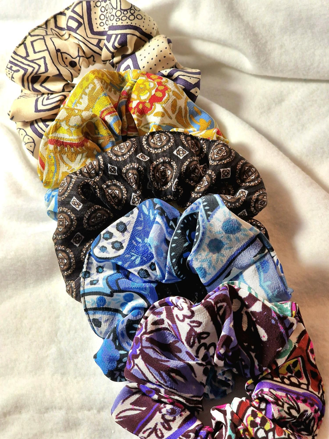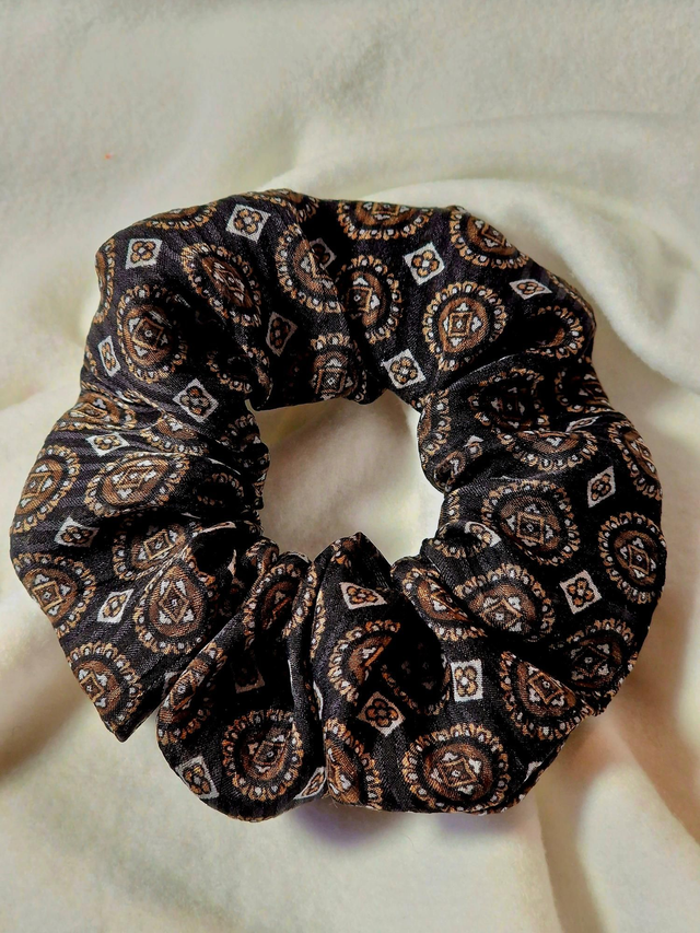 Chouchou en soie éco responsable, issue de stocks dormants de maisons de luxe.