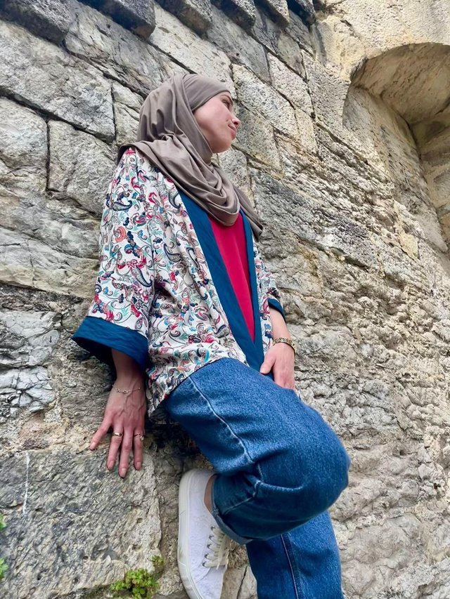👘Kimono à imprimé cachemire, cousu dans une superbe viscose haut de gamme issue de stock dormant d'une grande marque de prêt à porter haut de gamme (IKKS).