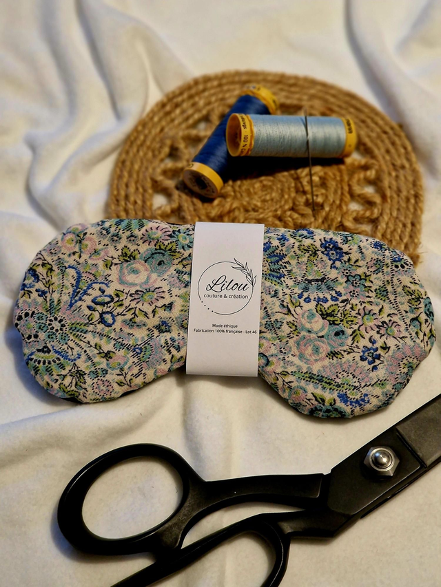 Masque de sommeil éco responsable et opaque réalisé en tissus surcyclés haut de gamme.