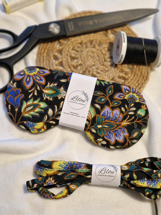 Masque de sommeil éco responsable et opaque réalisé en tissus surcyclés haut de gamme.