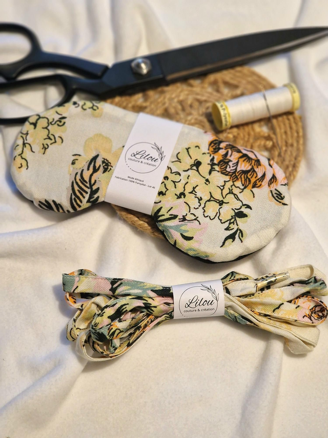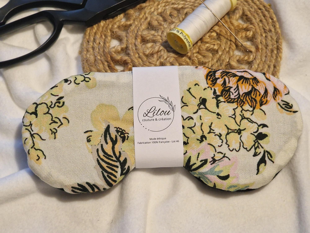 Masque de sommeil éco responsable et opaque réalisé en tissus surcyclés haut de gamme.