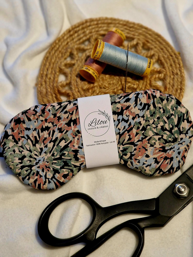 Masque de sommeil éco responsable et opaque réalisé en tissus surcyclés haut de gamme.
